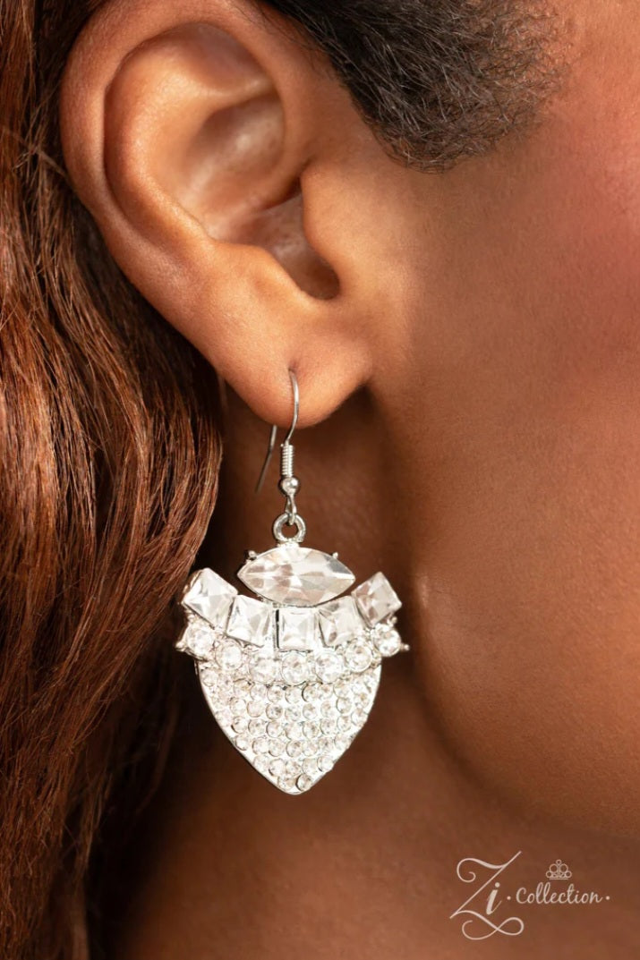 Anchored from a bold silver chain, hammered and sleek abstract silver chained links layer and interconnect along the collar for a mischievously mismatched look. Three frames with a solitaire marquise-cut white gem tilted on its side, give way to a spade-like pendant filled with countless white rhinestones that emerge from a bowing row of glassy, square-cut gems. Defaced stones with a bold hematite finish alternate between the glittery spades, completing the look with a gritty, grungy flourish. Features an adjustable clasp closure.